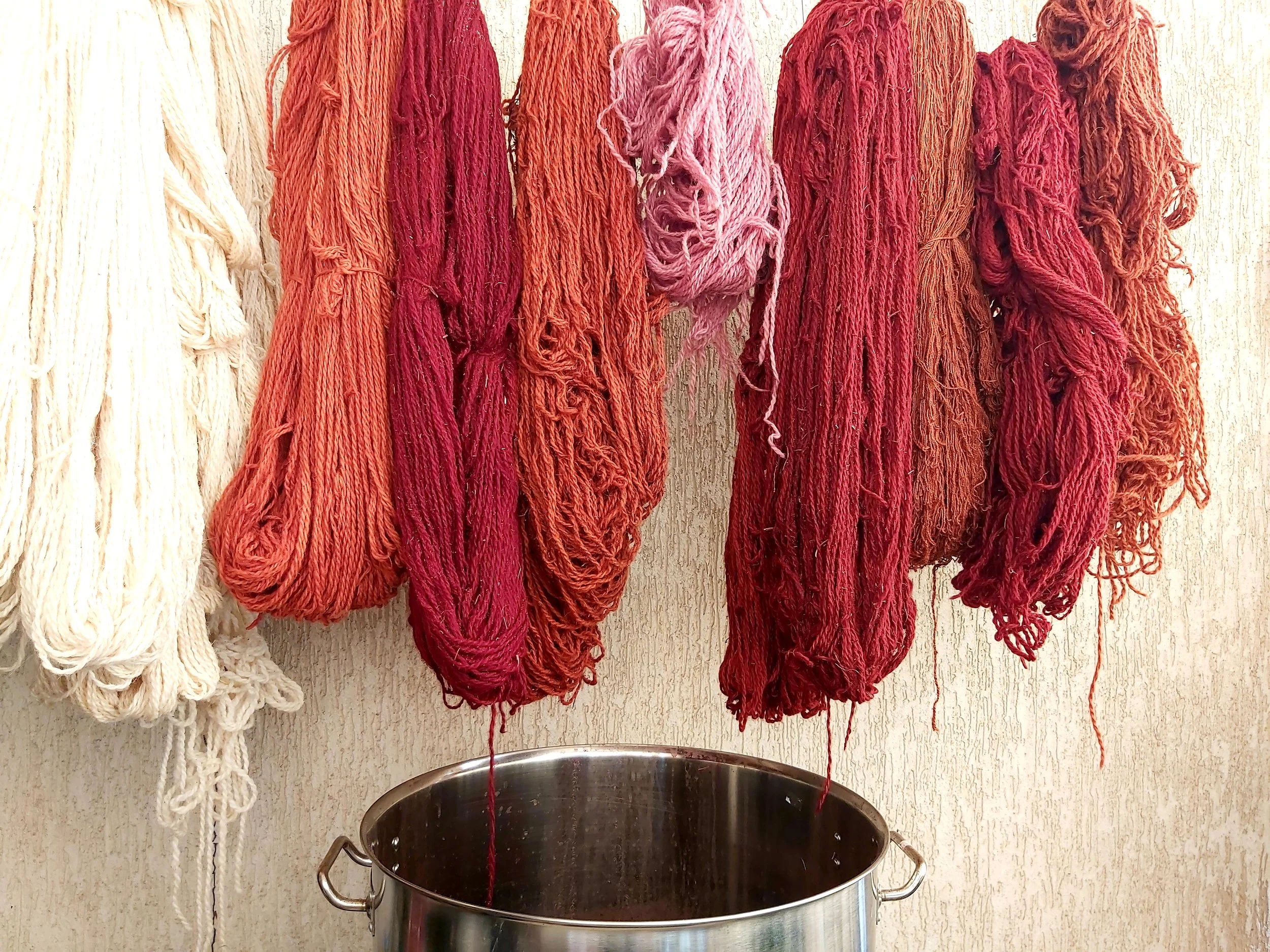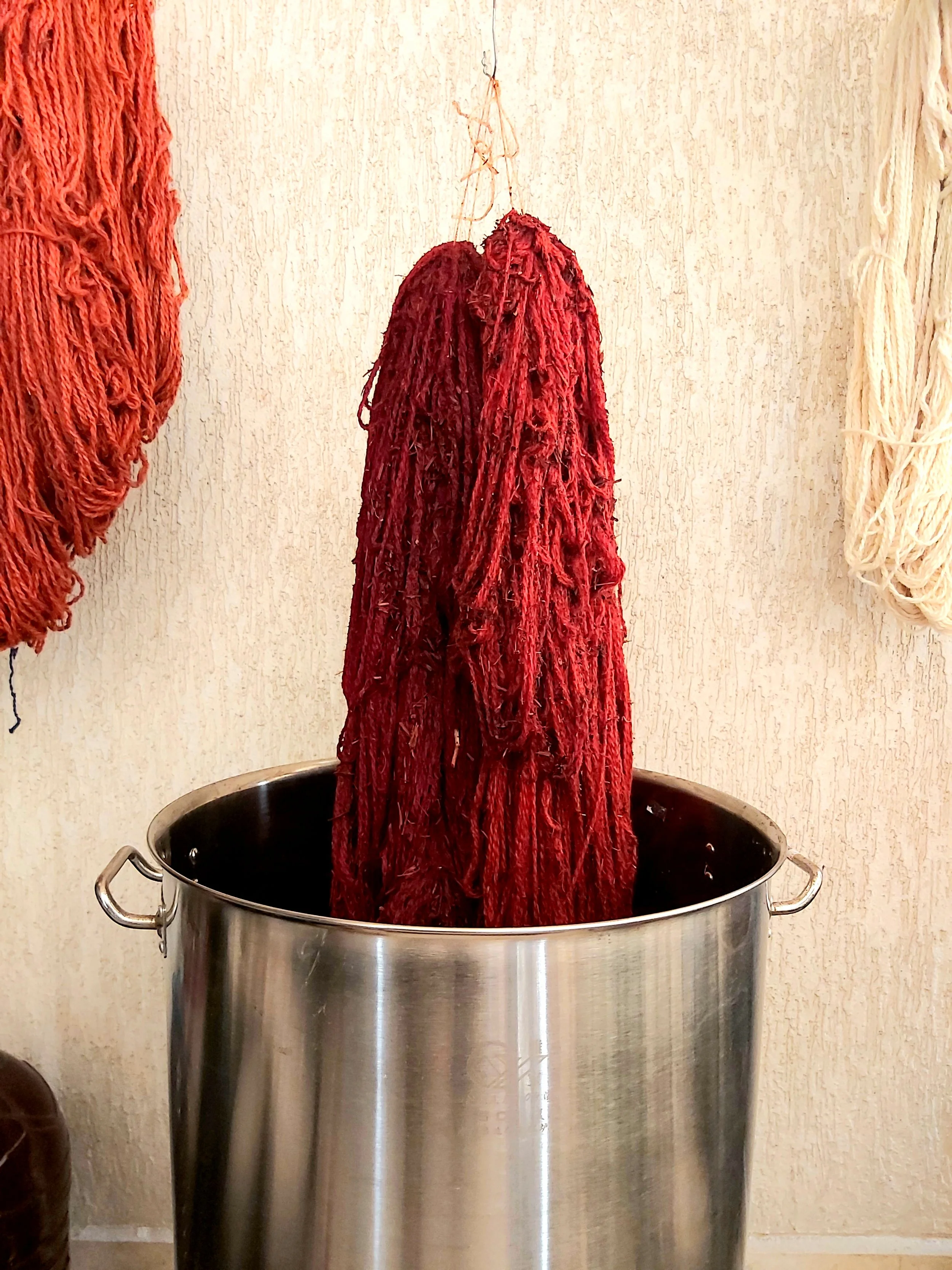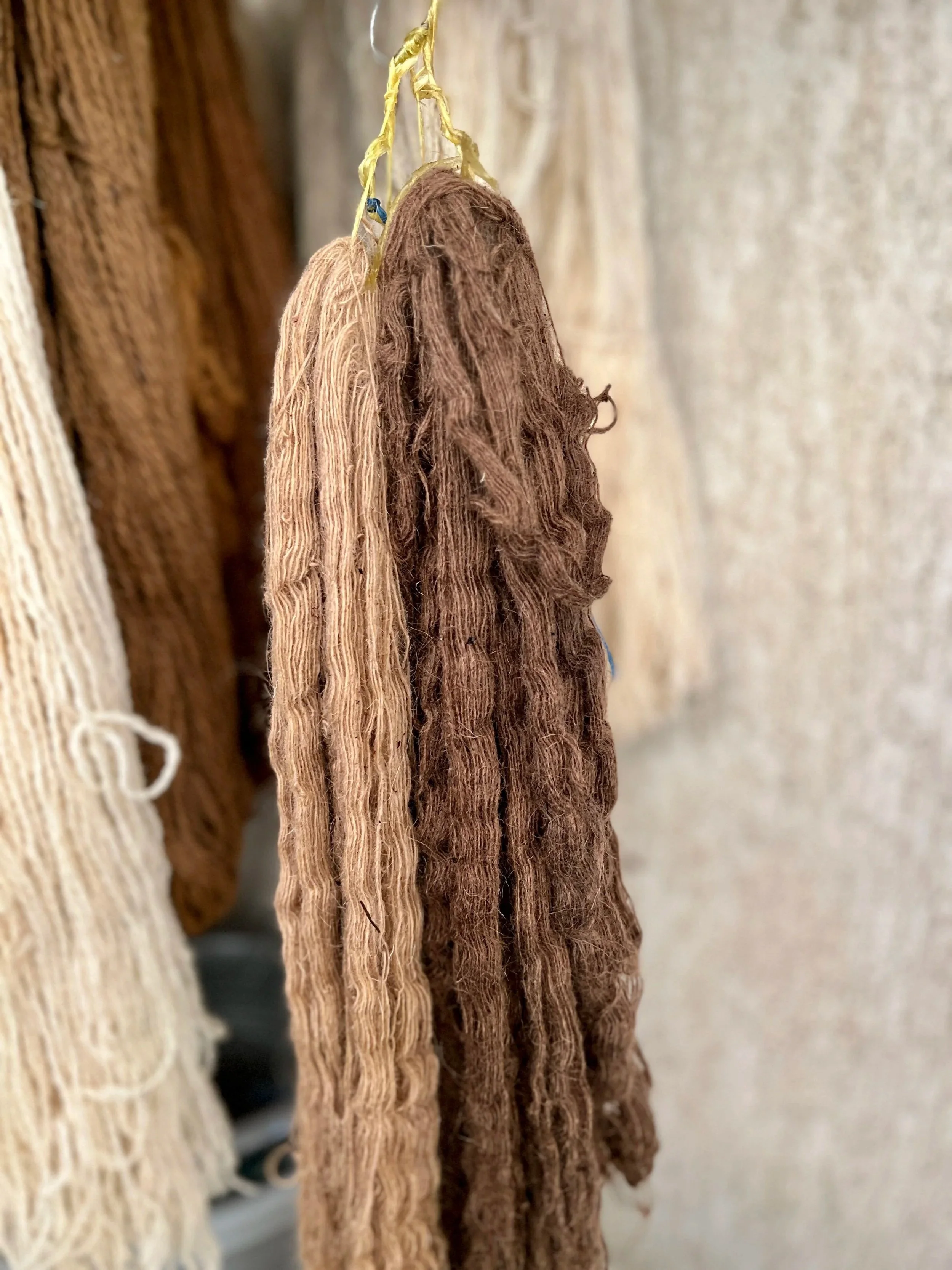 Colors are created from plants and minerals — madder, indigo, walnut, pomegranate — each bringing a subtle, organic life to the thread.